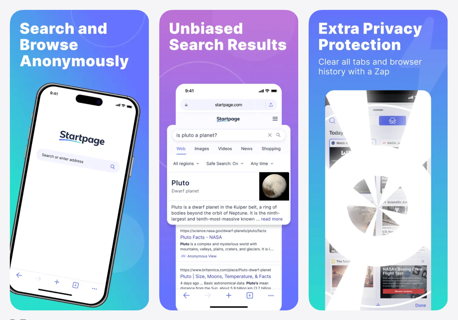 Startpage — поисковик без собственной системы индексации. Он использует результаты поиска Google, но обезличивает запросы. Идеальное решение для тех, кому нужна высокая релевантность выдачи крупной поисковой системы при сохранении приватности.